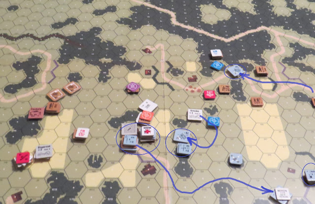 At the end of Dan's part of Turn, the Russians had made some progress, but the German positions were unscathed.