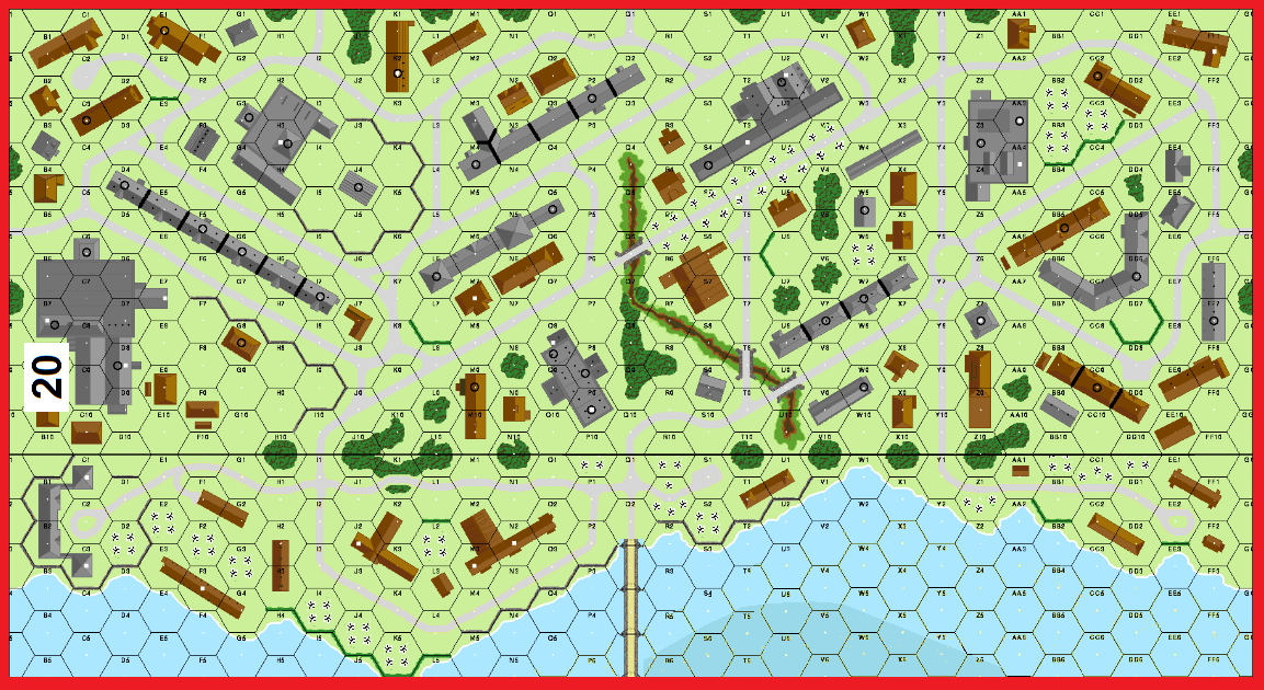 The Germans are the defender in this scenario and are guarding a bridge, which of course the Americans need to capture before the Germans blow it with a set DC. If the Germans blow any of the bridge, then the US Player has to control three buildings instead of 2 for the win.
