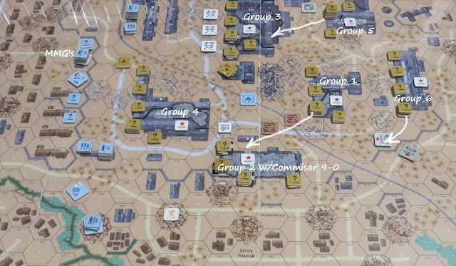 NOTE: The Russians are divided into 6 Groups and the Russian Player sets up the up with one group in each of the 6 victory location halls.