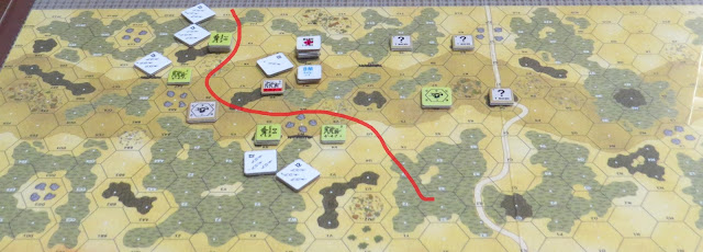 The battlefield is well imagined and remember to brush up on ground snow rules. They make going uphill and downhill a bit more difficult. So be prepared to go CX as needed. As someone who prefers to use the boards, I would love to someday be able to obtain winterized boards. Certainly, this is a great aspect of games over VASL.