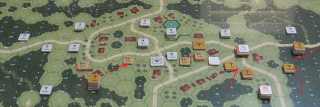 Observation: So wanted to take a second to remark on the number of squads between attacker and defender. Blick's Balk was 22 attacking vs. 16 defending. Finns needed to hold 6 buildings..plenty of force to hold those troops. Tali Whacker is 15 to 15. As the attacker, I really scratched my head as to just how I was going to take 18 building away from 15 x 5-5-8 Finnish squads. Historically, the Russians failed...I can see why.